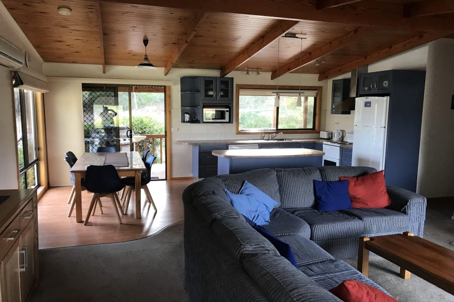 The property is a 10 minute walk to the beaches, boat ramp, general stores, restaurants, post office, bakery, coffee shops and hotel. The property offers a queen room with views of the Hazards, a second bedroom (also with views) with two single beds plus a third bedroom with a double bed with ensuite and access to the rear deck, which backs on to bushland. There is ample off-street parking for two cars and a boat